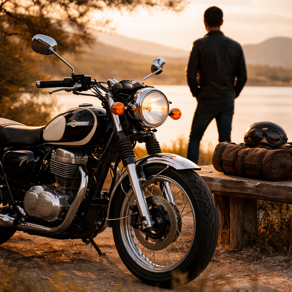 デニムやレザージャケット、ミリタリー系のアウター、シンプルなブーツなどを合わせることで、車体の細さは「頼りなさ」ではなく「軽快さ」「クラシック感」としてポジティブに映ります。