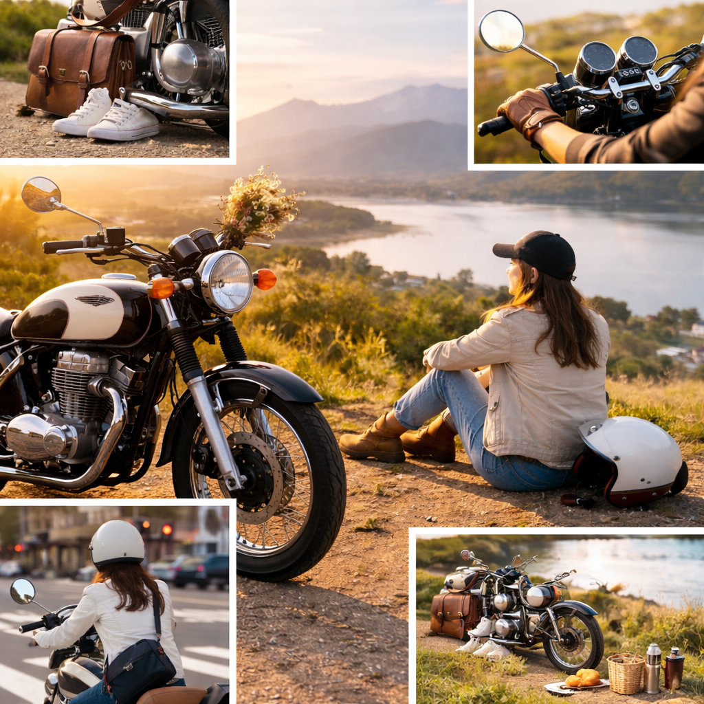服装や持ち物、行き先の雰囲気を崩さずに取り入れられるため、バイクを自己表現の一部として自然に取り込むことができます。