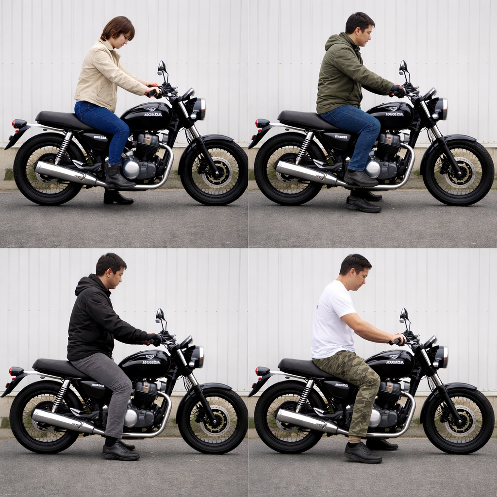 実際にローダウンキットや厚底ブーツを活用して、自分の体格に合わせた足つきを作っているライダーも多くいます。