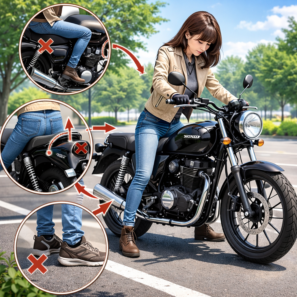 また、足つきに少し不安がある場合でも、ローダウンシートや厚底ライディングブーツなどを組み合わせることで、さらに安心感を高めることができます。