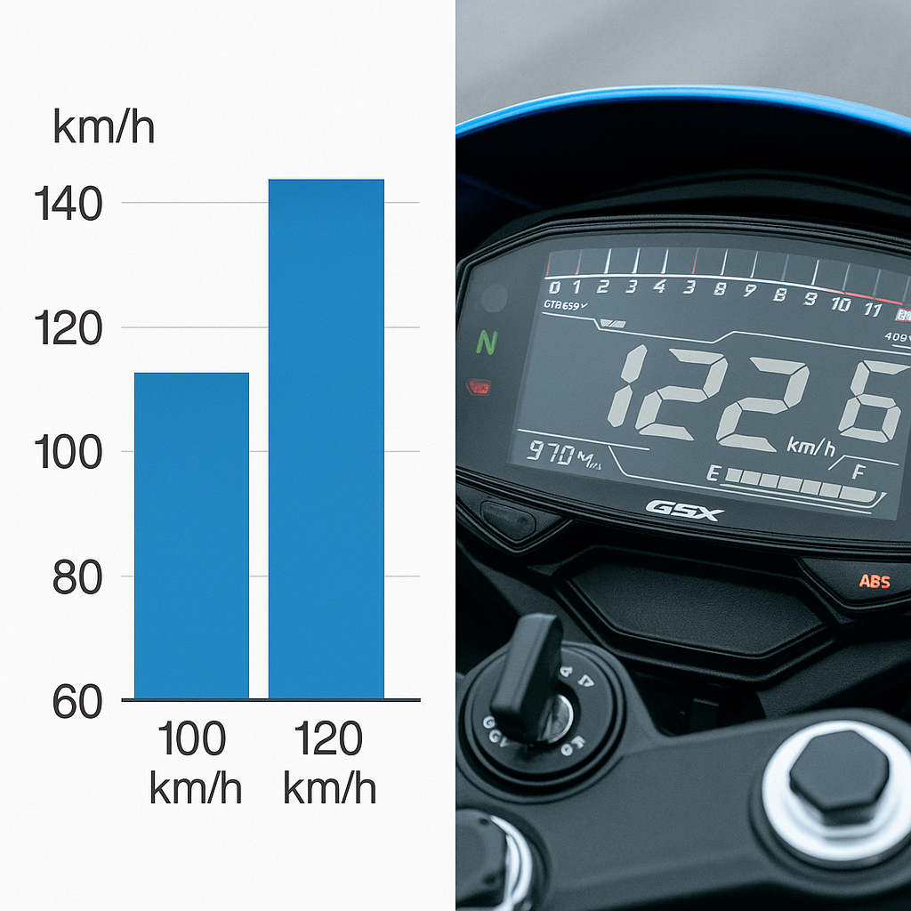 GSX-R125の実測最高速は、多くのライダーによる計測データから110〜115km/h前後が一般的とされていますが、その数値の裏にはさまざまな条件が複雑に関係しています。