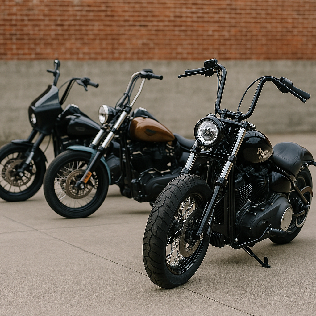高く構えたエイプハンガー、ストリート仕様のドラッグバー、快適性重視のプルバックバーなど、選ぶハンドルによって走りのスタイルや雰囲気も大きく異なります。