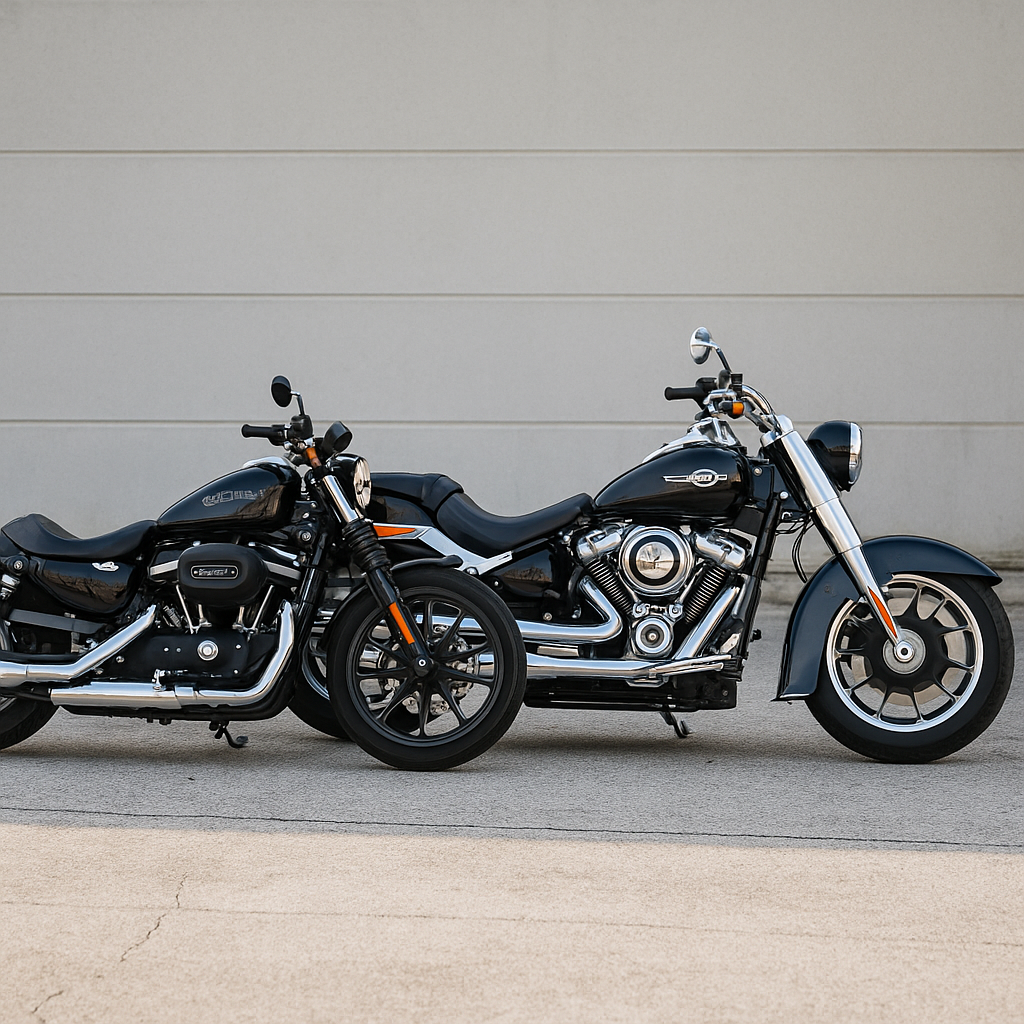 📷 画像例:883ccスポーツスターと1800ccソフテイルを並べた比較写真