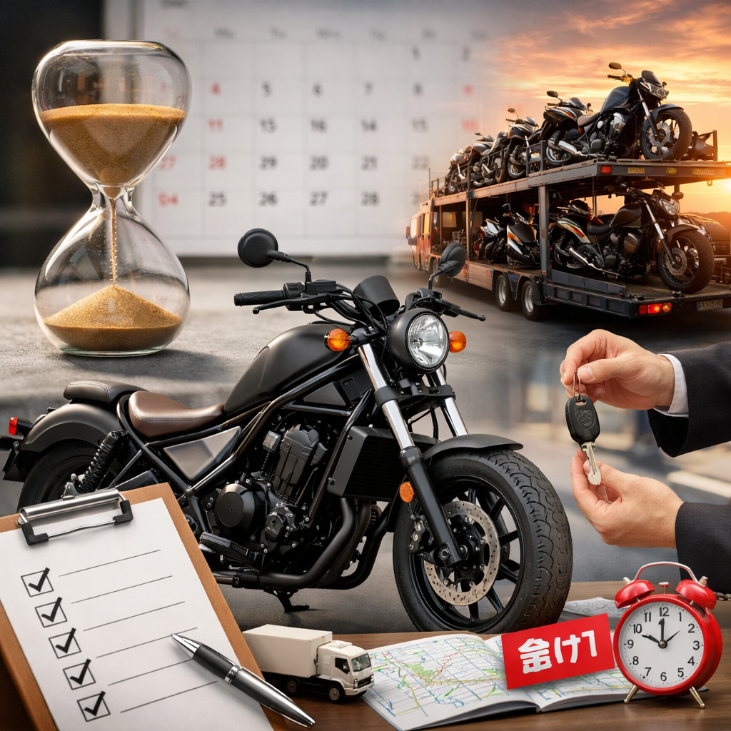 現在の納期は、選ぶ条件や探し方によって大きく変わります。同じレブル250でも数週間で手に入るケースもあれば、数ヶ月以上待つケースも珍しくありません。