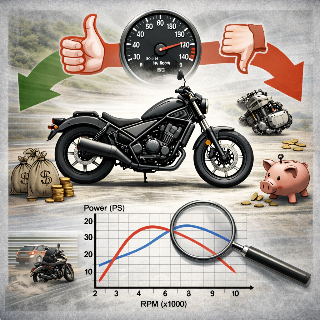 「速さ=満足」なら他モデル、「扱いやすさ=満足」ならレブル250が最適です。
