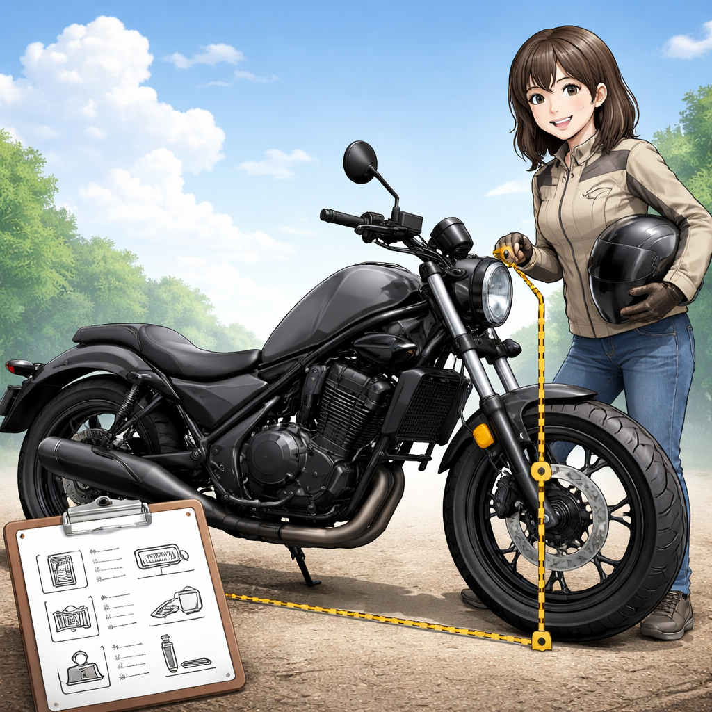 さらに、車体重量とのバランスも重要です。レブル250は比較的扱いやすい重量に抑えられているため、万が一傾いた場合でも立て直しやすく、心理的な余裕にもつながります。
