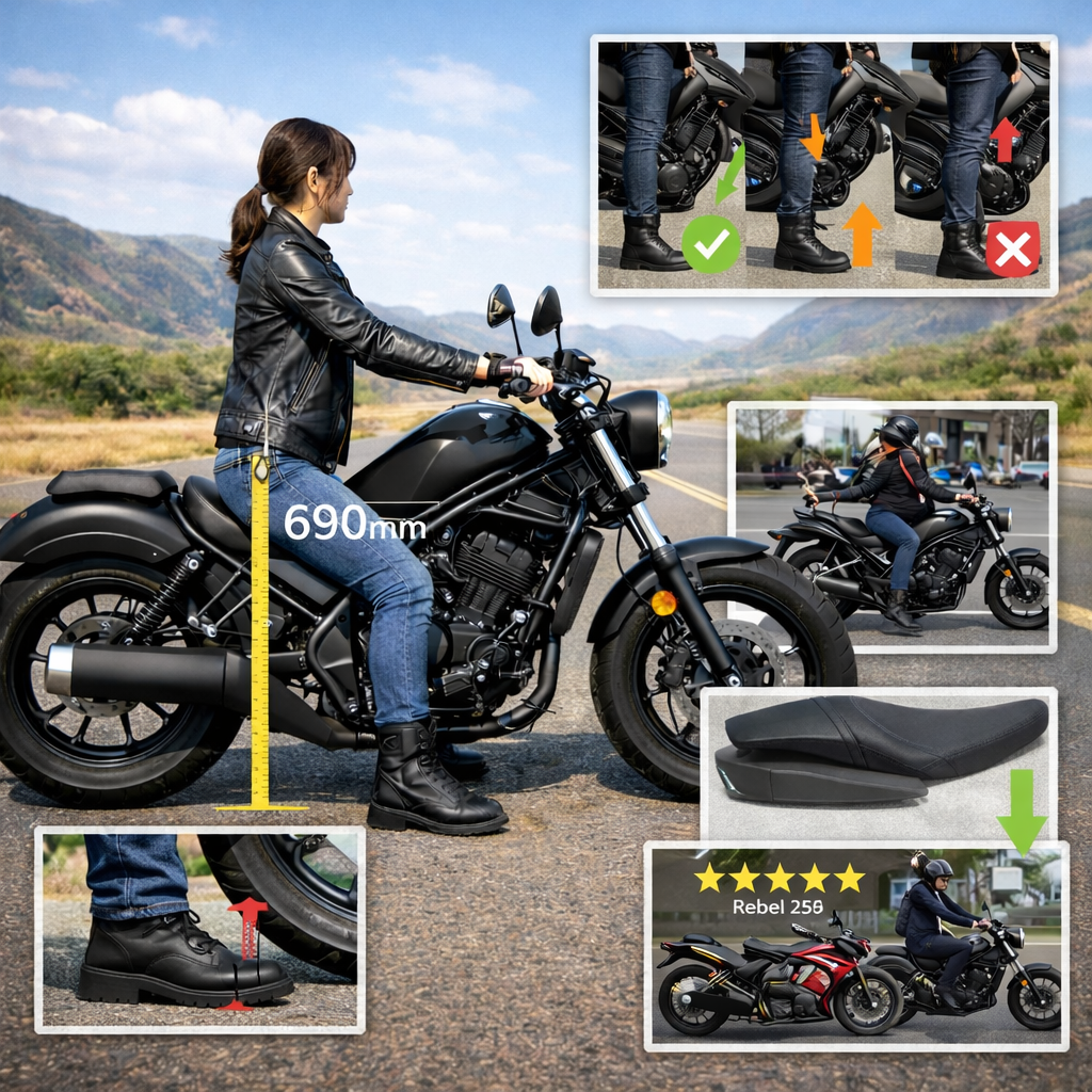 この記事では、レブル250のシート高を「数値」「体感」「実用性」の3つの視点から詳しく解説し、足つきに不安がある方でも納得して選べるようにまとめています。
