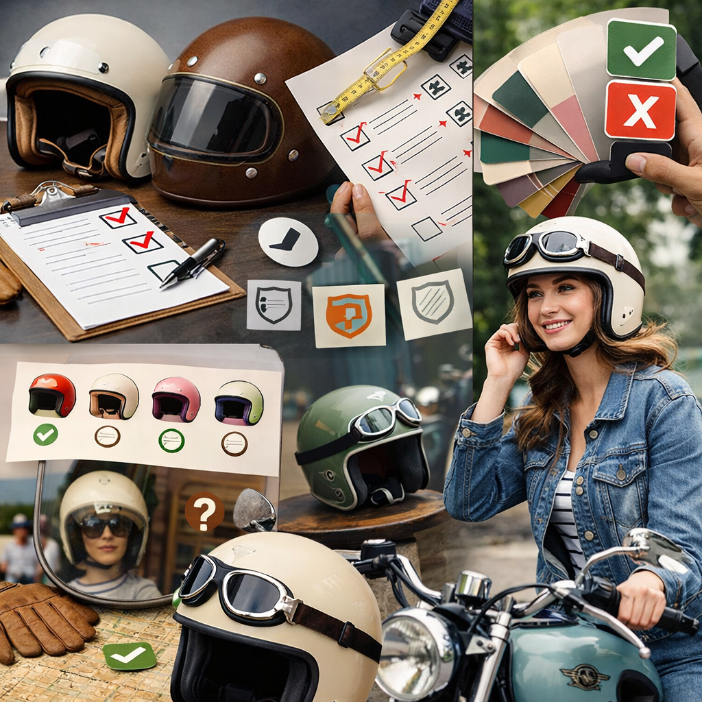 レトロでおしゃれなバイクヘルメットを選ぶ際は、見た目だけで判断するのではなく、「安全性・サイズ・快適性・デザイン」の4軸でバランスよく選ぶことが重要です。