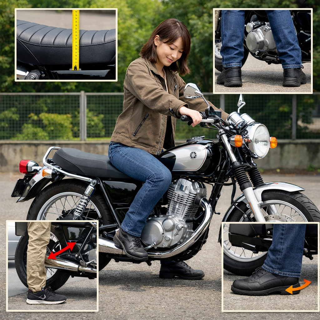 SR400のシート高や足つきに不安がある場合、購入前の確認方法が非常に重要になります。