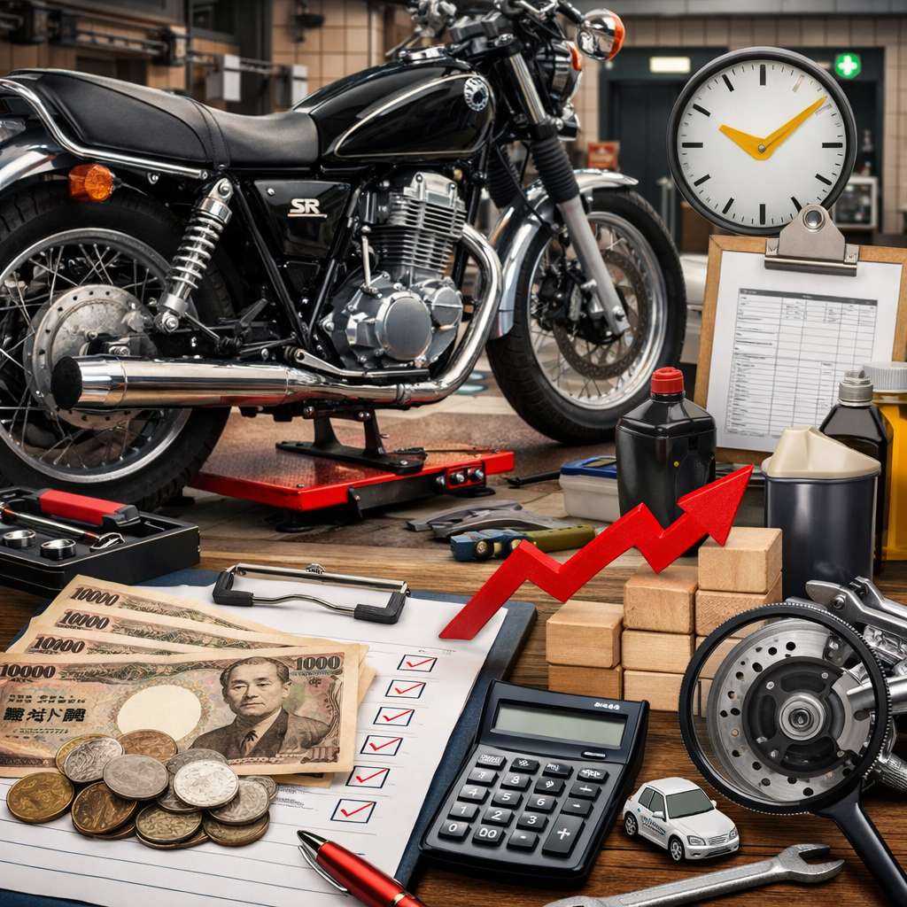 この記事では、SR400の車検費用について相場・内訳・高くなりやすい原因を整理しながら、実際に費用を抑えるための具体的な考え方と準備方法を分かりやすく解説します。