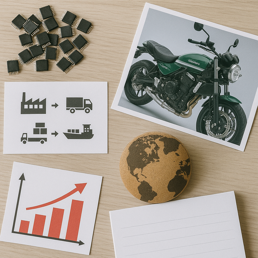 特に、ABS制御ユニットやメーター関連部品は同系列モデルと共通化されているため、他車種との生産バランスを取る必要があり、Z650RSの組立てスケジュールにも影響しています。