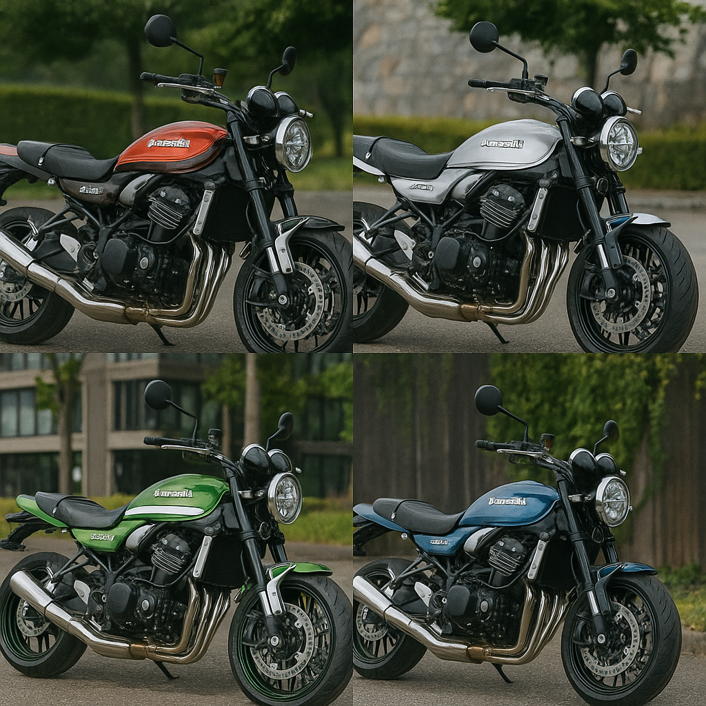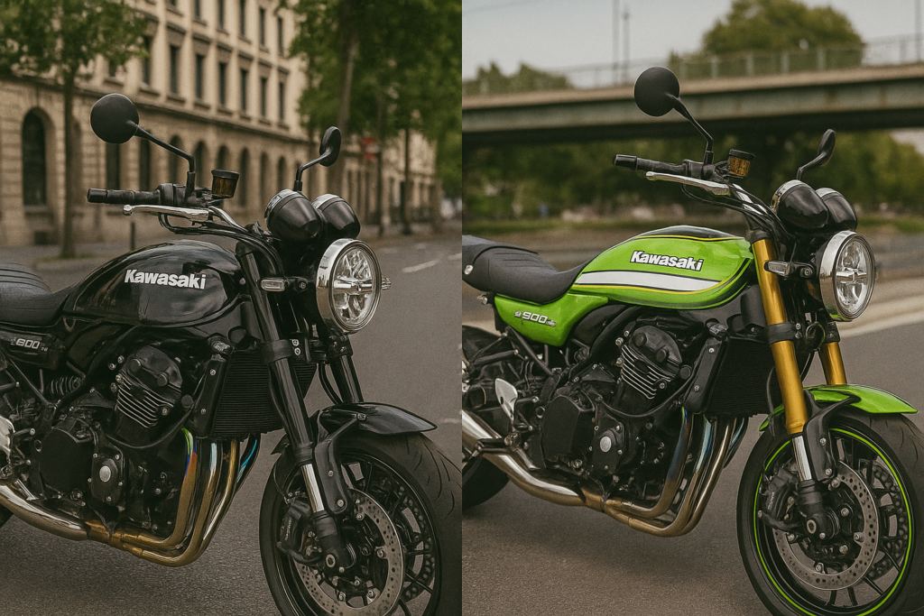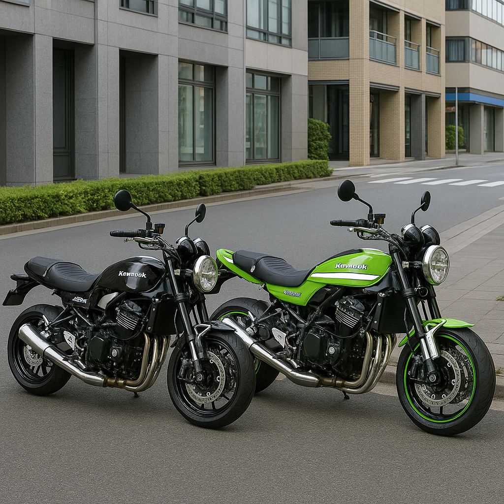 🖼 イメージ例: Z900RSカラー別の街乗りシーン(ブラック=重厚、グリーン=スポーティ)