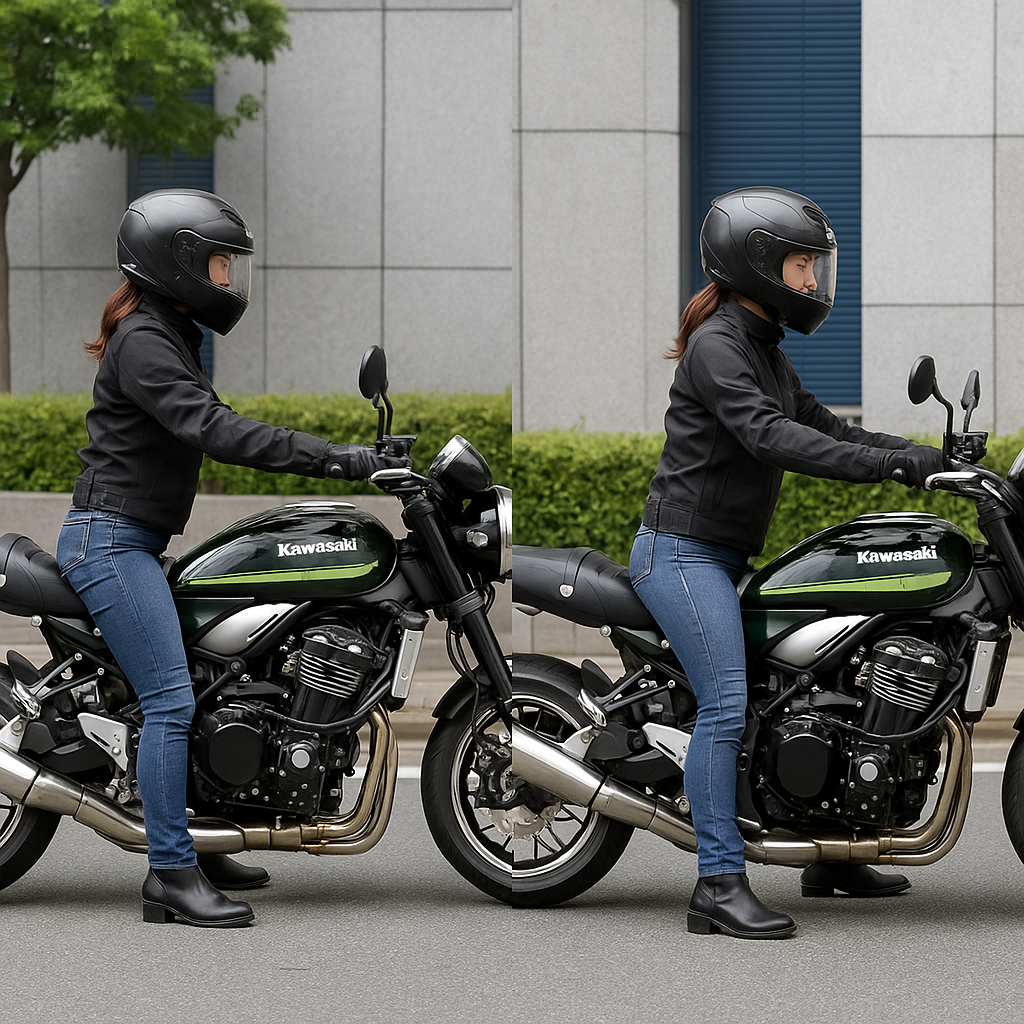 Z900RSは足つきに不安を感じるライダーでも、ポジション・装備・ライディングの工夫次第で、十分に安心して楽しむことができます。