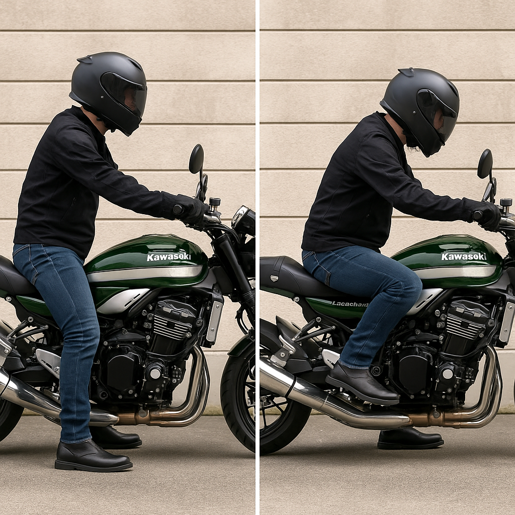 ポジションを正しく調整することで、実際のシート高を変えなくても驚くほど足つきが改善することがあります。ここでは、すぐに実践できる姿勢改善のポイントを紹介します。