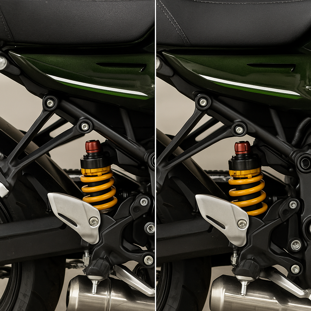 Z900RSはアップライトなポジションが特徴ですが、足つき改善を目指すならステップ位置とのバランスも非常に重要です。