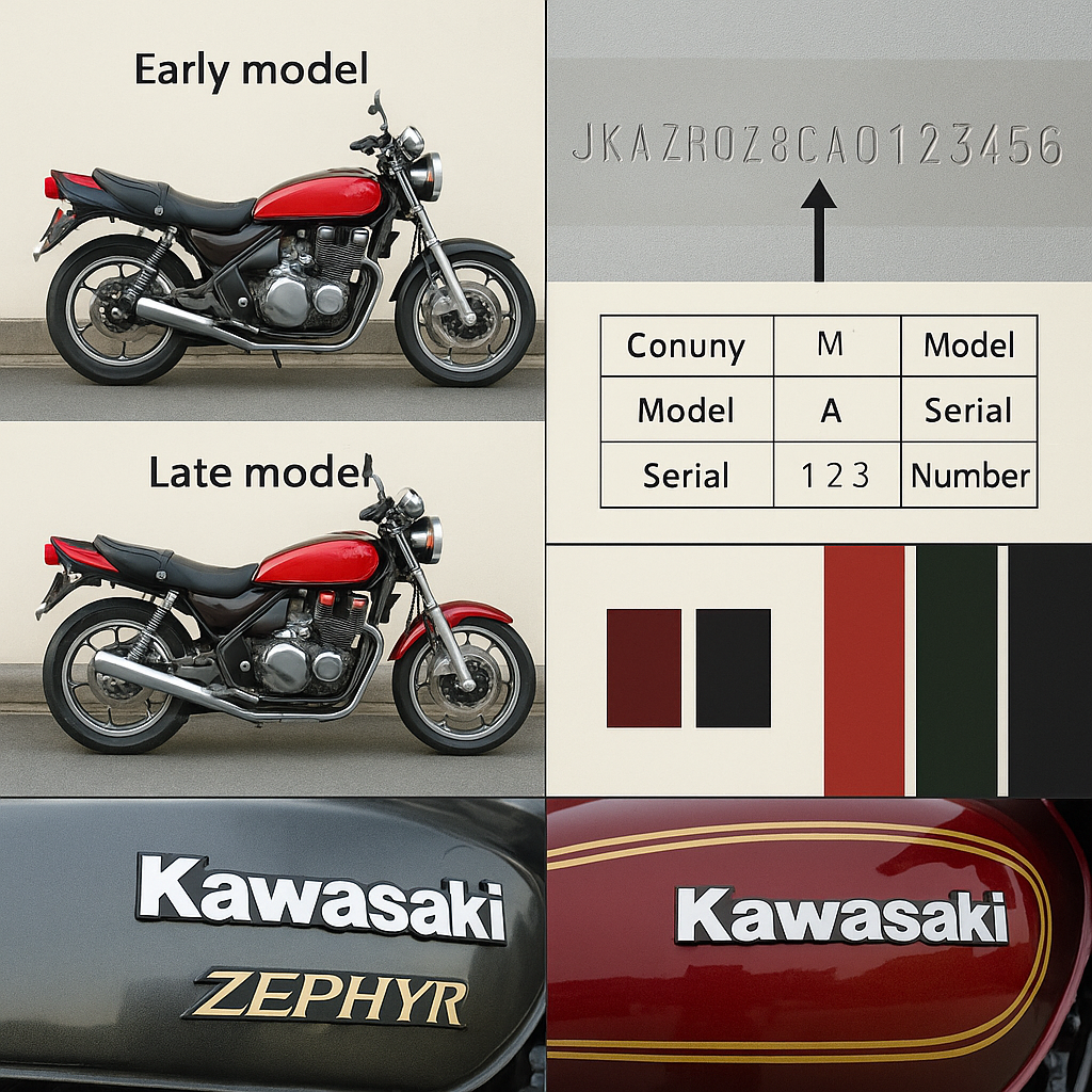 ゼファー400の年式ごとの違いや見分け方をやさしく解説。フレーム番号や外装、カラーの変化を押さえ、購入前の判断材料に役立つ情報をまとめました。