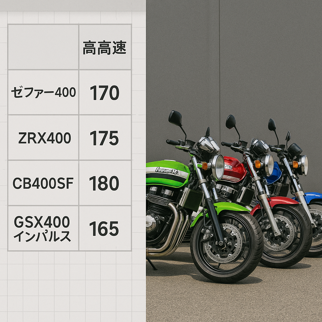 ゼファー400と他400ccの最高速比較